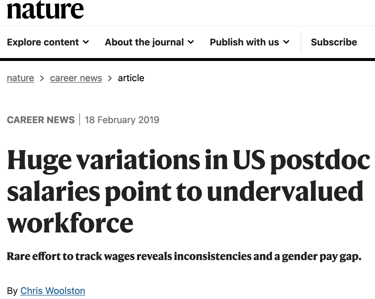 Article Highlight: Assessing the landscape of US postdoctoral salaries
