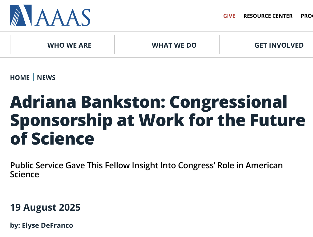Adriana Bankston: Congressional Sponsorship at Work for the Future of Science